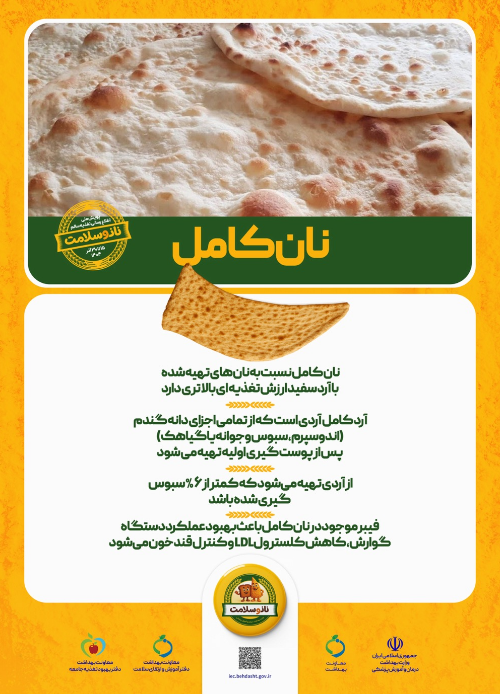 تأثیر مصرف نان کامل(دارای سبوس و گیاهک گندم) در پیشگیری از ابتلا به انواع بیماری ها ازجمله مشکلات قلبی-عروقی، دیابت، مشکلات گوارشی، سرطان ها، چاقی و مشکلات متابولیکی نقش دارد. چندین دهه است که سبوس و جوانه گندم در اکثر کارخانجات کشور، در مقادیر مختلف از آرد جداسازی می شود و با سبوس گیری 85% فیبر، ویتامنیها، املاح وکل جوانه جداسازی می گردد. در اینصورت نان مصرفی، فاقد فیبر کافی و سبوس مورد نیاز بدن است. نان حاصل ارزش غذایی بسیار پایینی دارد و موجب شیوع انواع بیماری ها می شود.