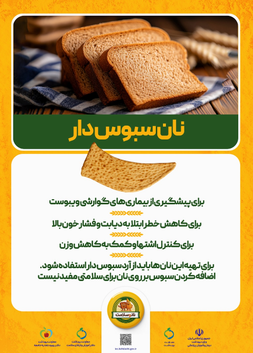در این راستا پویش " نان و سلامت" با هدف ارتقای آگاهی عمومی درباره مفهوم نان سالم از 15 آذر الی 30 آذر برگزار می شود. در واقع آگاهی به مردم کمک می کند که بدانند باید نان با آرد سبوس گیری نشده مصرف شود ، نه صرفا سبوس اضافه شده روی سطح نان که امروزه در برخی نانوایی ها رواج دارد!