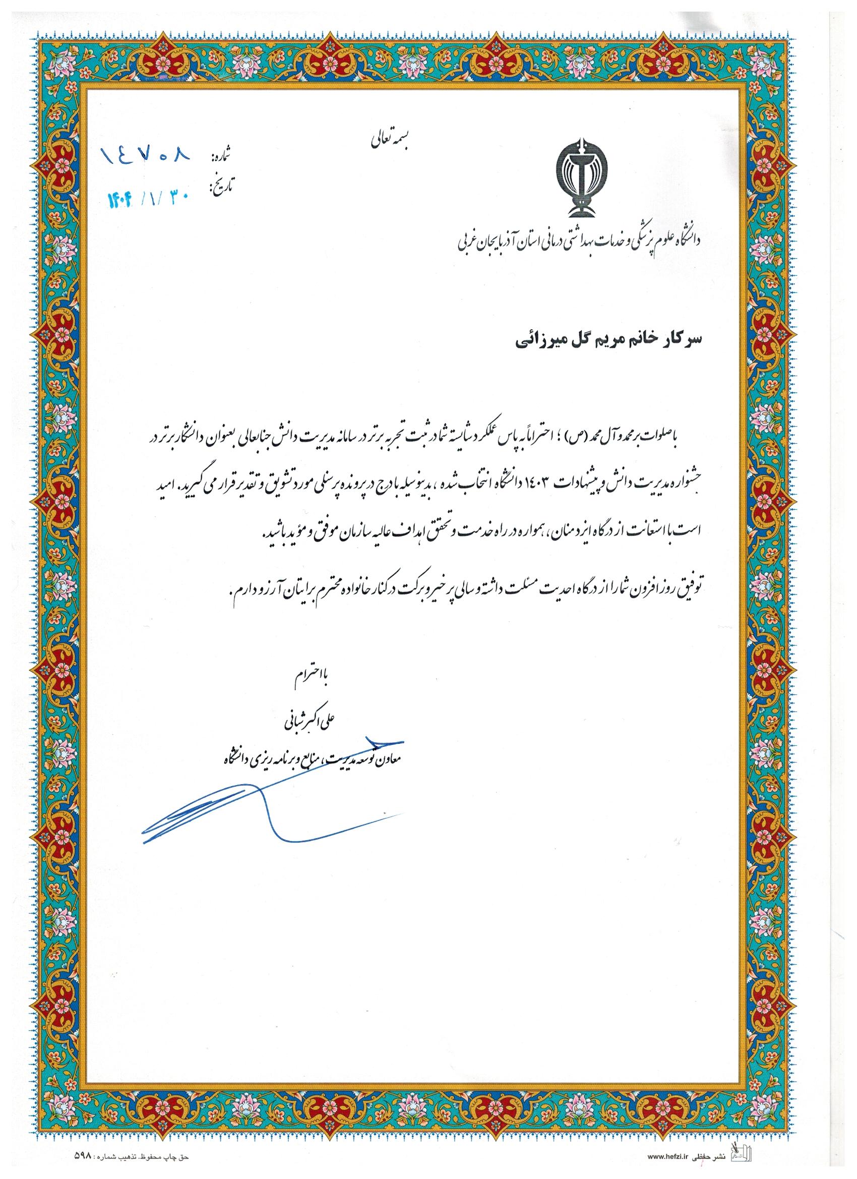 یادآوری می نماید از سه نفر دانشکار برگزیده در سطح دانشگاه ، دونفر از حوزه معاونت بهداشت بودند.